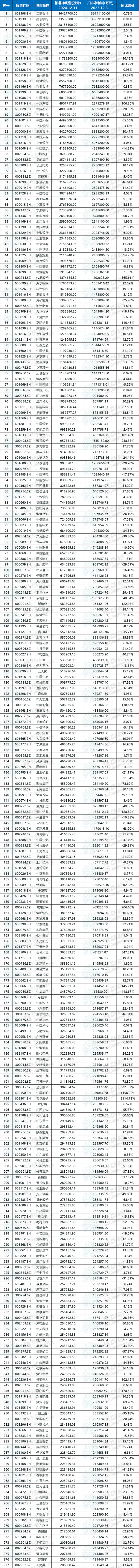 A股公司2024年度净利润排名统计,前4名均为银行