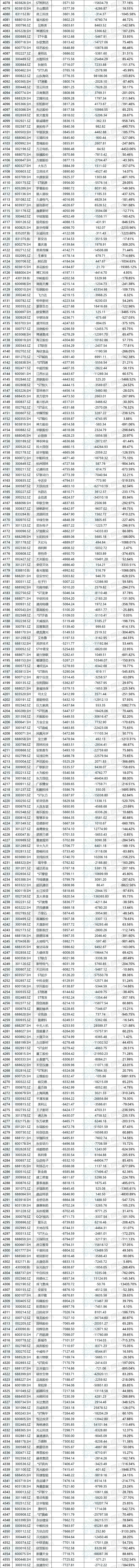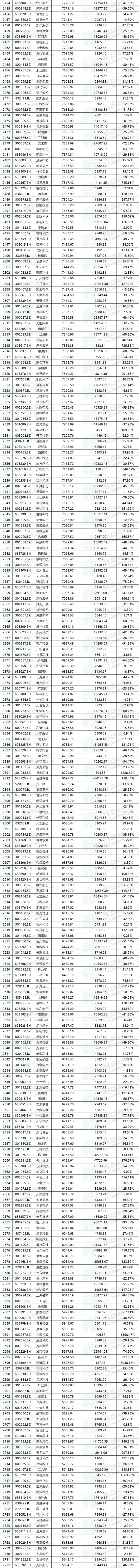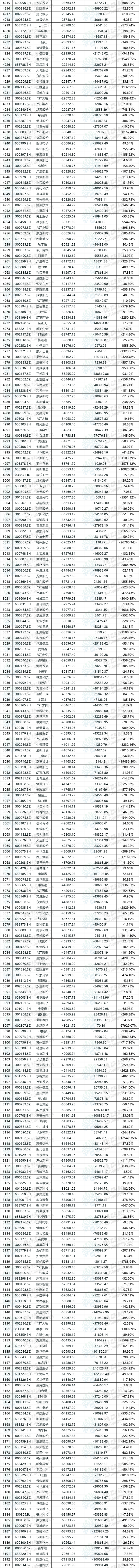 这5402家公司中,共计3795家公司在2024年度实现盈利,工商银行(601398.SH)以3642.77亿元的扣非归母净利润占据榜首,较2023年同比增长0.79%;1607家公司扣非归母净利润为负,其中万科A(000002.SZ)亏损高达453.94亿元,扣非净利润垫底,同比变动-563.49%。