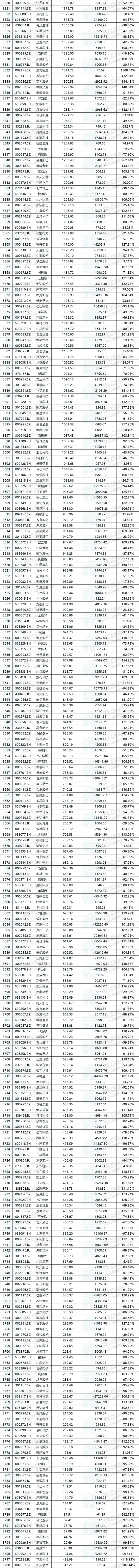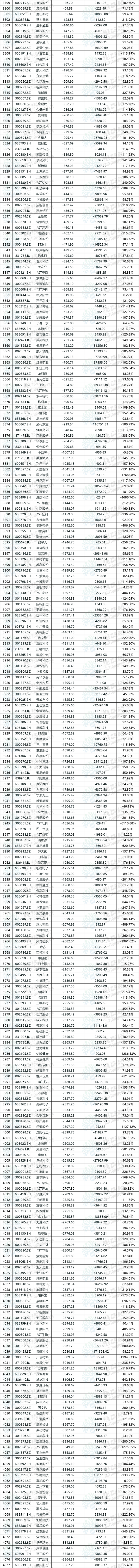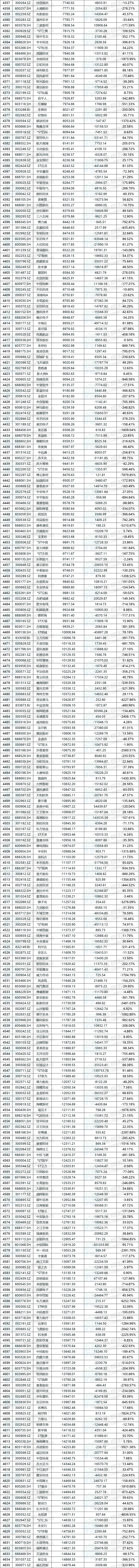 这5402家公司中,共计3795家公司在2024年度实现盈利,工商银行(601398.SH)以3642.77亿元的扣非归母净利润占据榜首,较2023年同比增长0.79%;1607家公司扣非归母净利润为负,其中万科A(000002.SZ)亏损高达453.94亿元,扣非净利润垫底,同比变动-563.49%。