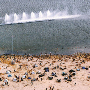 大批游客在金山城市沙滩支起帐篷 特约通讯员 庄毅 摄