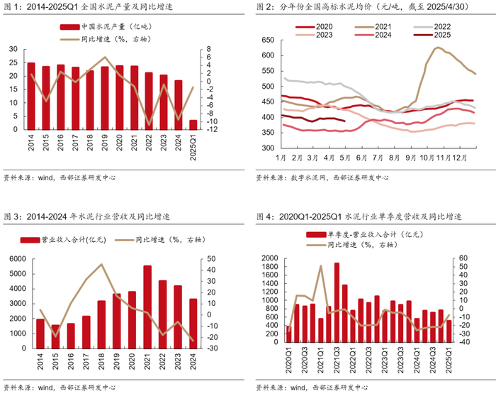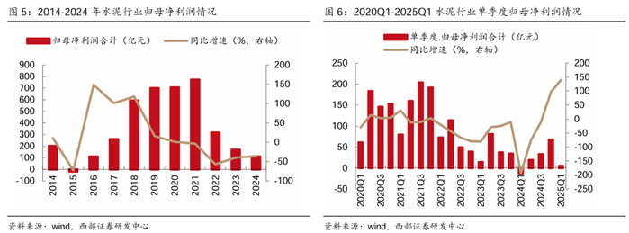【西部建筑建材】水泥行业24年报及25年一季报总结:收入降幅放缓、盈利显著改善,行业拐点或至