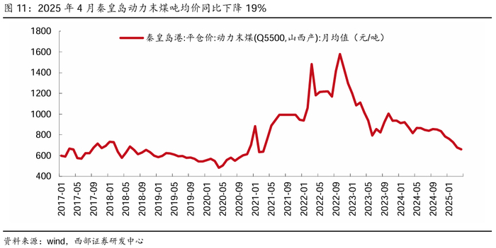 ● 从龙头个股来看,2024年大部分水泥公司吨成本均实现不同程度的下降。24年水泥龙头个股的吨成本平均下降19元,在吨均价平均下降23元的前提下促使吨毛利仅下滑4元。具体看,除华新水泥因海外业务占比较高推涨吨成本(但吨均价也较高)外,其他公司吨毛利均实现不同程度的压缩,其中华润建材科技、冀东水泥、天山股份、塔牌集团的单吨成本均下降20元以上,分别下降34、30、23、21元。结合上文所述25Q1毛利率提升较多,叠加煤炭成本进一步下探,我们认为今年水泥行业成本端有望继续下行。
