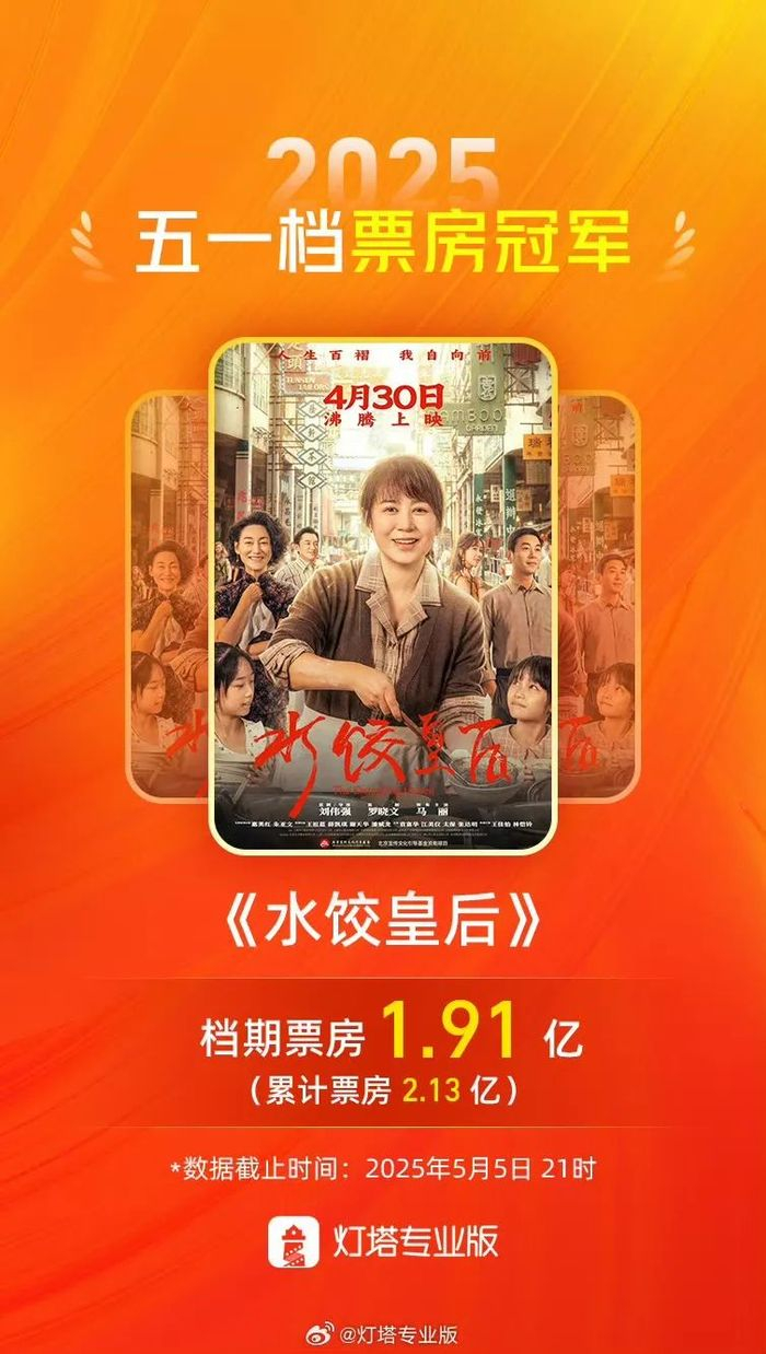 《水饺皇后》是今年五一档期票房、首日票房、总场次、观影总人数、预售额多项冠军,该片之所以脱颖而出,在13部影片中实现领跑,得益于几大因素。
