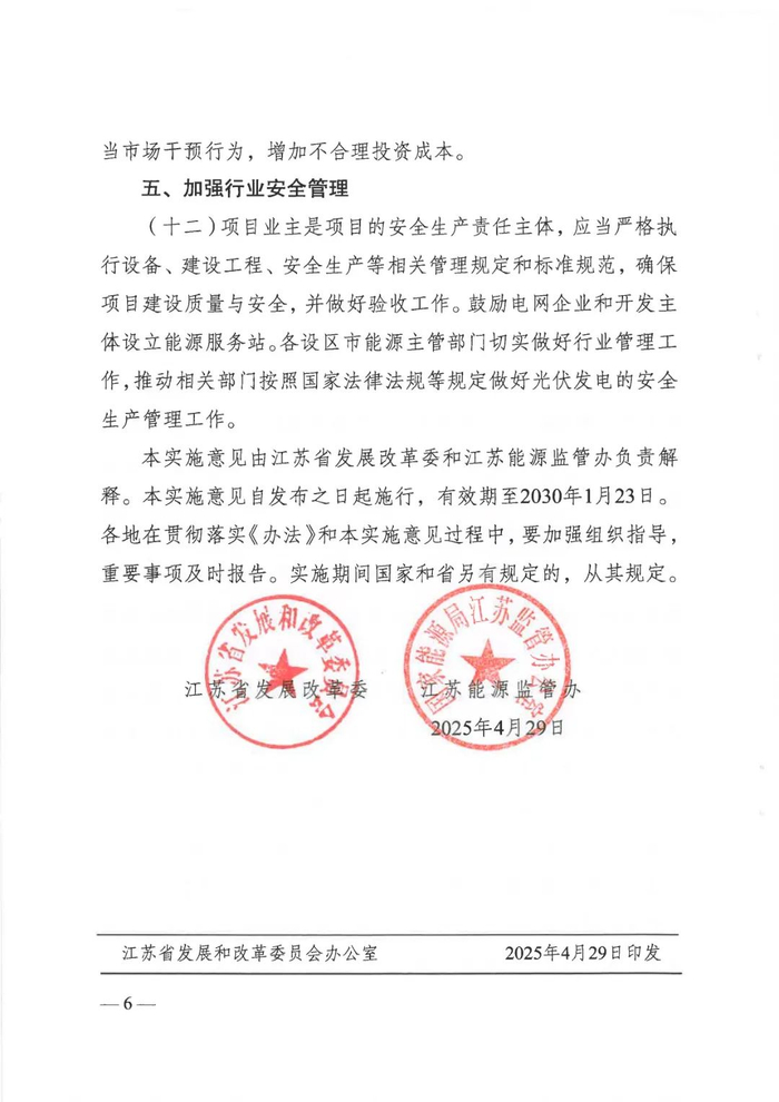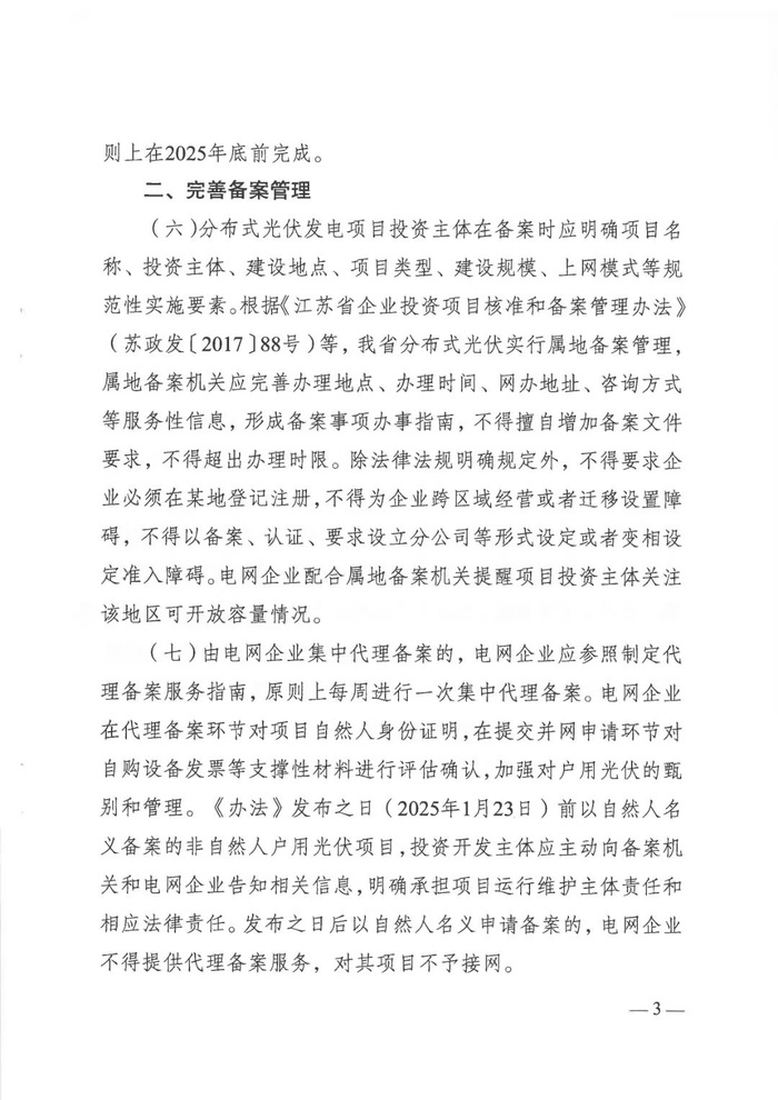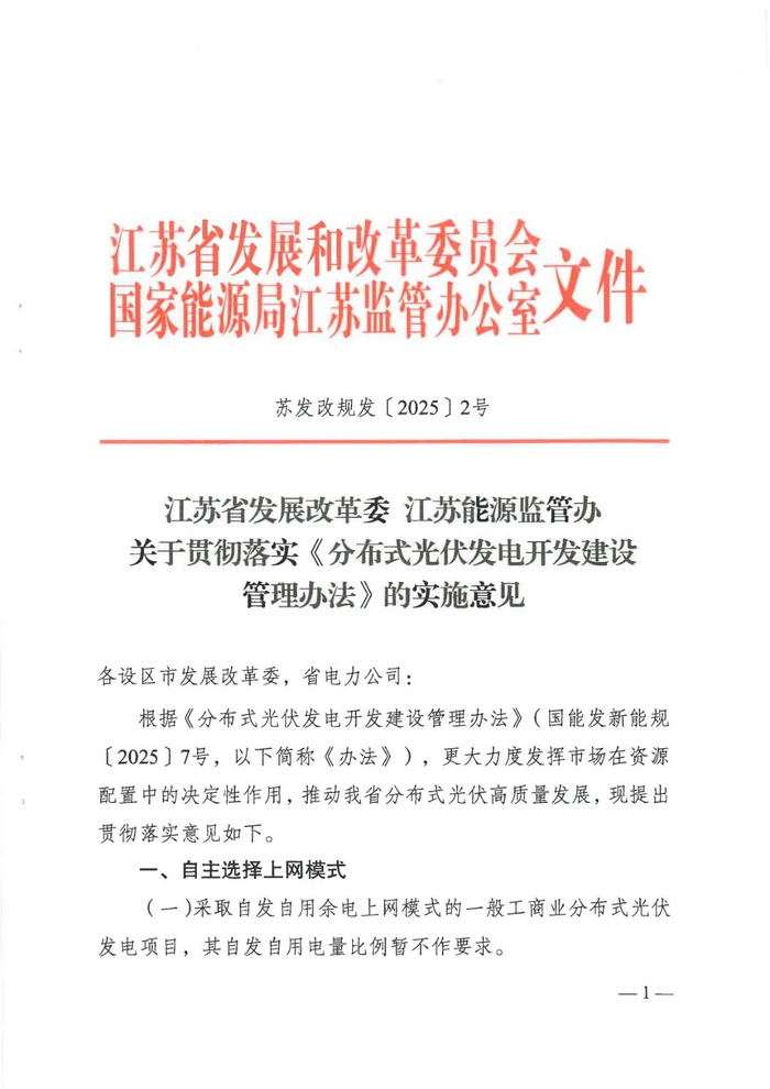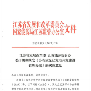 近日,江苏省发展改革委与江苏能源监管办联合印发《关于贯彻落实〈分布式光伏发电开发建设管理办法〉的实施意见》(苏发改规发〔2025〕2号),通过优化上网模式、简化备案流程、保障接网消纳、规范整村开发、强化安全管理,多维度破解分布式光伏发展痛点,为企业、投资者及从业者注入信心。