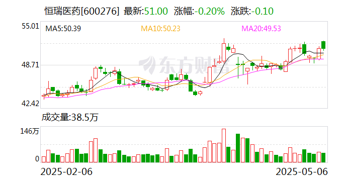在“创新+国际化”双轮驱动战略下,恒瑞医药业绩显著增长。3月30日,恒瑞医药发布2024年年度报告,2024年实现营业收入279.85亿元,同比增22.63%,归属于上市公司股东的净利润63.37亿元,同比增47.28%,归属于上市公司股东的扣非净利润61.78亿元,同比增49.18%,公司业绩显著增长,营收、净利均创新高。4月24日晚,恒瑞医药公布2025年一季报。报告期内,恒瑞医药实现营业收入72.06亿元,同比增长20.14%,归属于上市公司股东的净利润18.74亿元,同比增长36.90%,归属于上市公司股东的扣非净利润18.63亿元,同比增长29.35%,可谓开局良好。