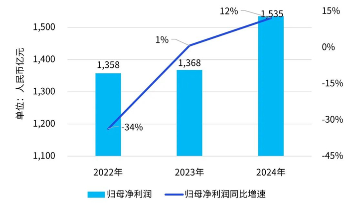 2024年43家上市券商营业收入、归母净利润分别为人民币5,357亿元、人民币1,535亿元,同比分别增长5.42%、12.19%。