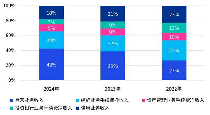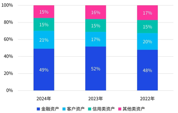 信用业务收入:共计人民币898亿元,较上年减少11%,收入结构占比回落至18%。