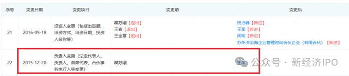 2017年10月,苏州济沧海将其持有公司的19.432%股权转让给王强,转让后,苏州济沧海仍然持有14%股权,王强担任执行事务合伙人,并持有1%的出资份额。
