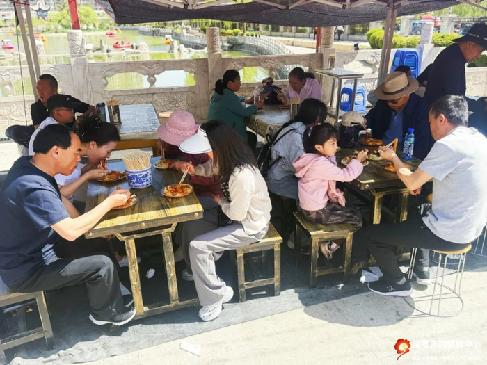 五一假期,这样的场景在全市文旅景点美食摊位同步上演。据集市管理方统计,嘉年华期间,酿皮子、东乡手抓、甜醅子等特色小吃日均销售额较平日增长200%,许多摊位单日收入较平日增长2倍多。烟火气升腾的背后,是本地商户的“致富经”:许多摊主借此契机升级品牌,推出“美食礼盒”,线上线下同步销售。来自兰州的游客阎先生笑称:“本来是来看花的,结果被美食‘绊住脚’,三天吃了多家老字号,行李箱都装满了特产。”小摊位连接大产业,一碗甜醅、一张酿皮,成为激活假日经济的“微细胞”。