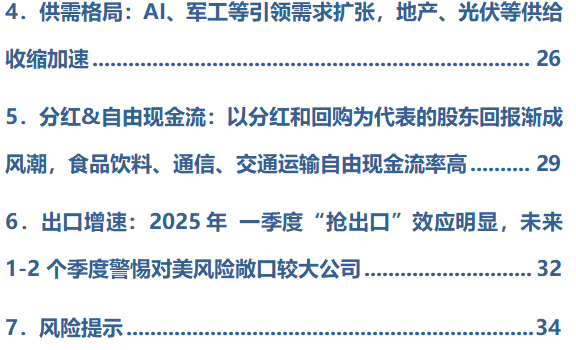 6.出口增速:2025年 一季度“抢出口”效应明显,未来1-2个季度警惕对美风险敞口较大公司