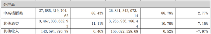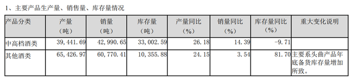 根据财报,2024年泸州老窖白酒销量合计10.38万吨,同比增长7.77%。其中,中高档酒类销量为4.30万吨,同比增长14.39%;其他酒类销量为6.08万吨,同比增长3.54%。