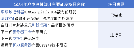 2024年沪电股份研发投入7.9亿元,与国内外客户共同进行多个新产品、新工艺的研发。年报中可以看出,公司主要的研发项目集中在汽车电子、高阶HDI和服务器平台等应用场景。
