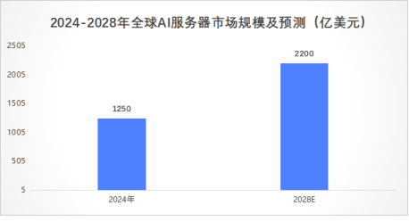 预计2028年,全球AI服务器市场规模可突破2200亿美元。