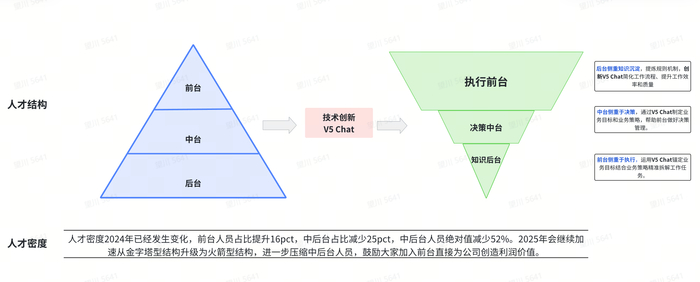 组织架构层面,2024年遥望组织和人才已经发生了变化,将坚定升级执行前台台、决策中台和知识后台的组织结构。当前前台人员占比提升16pct,中后台占比减少25pct。2025年会继续加速人才结构升级,进一步压缩中后台人员,鼓励大家加入前台直接为公司创造利润价值。
