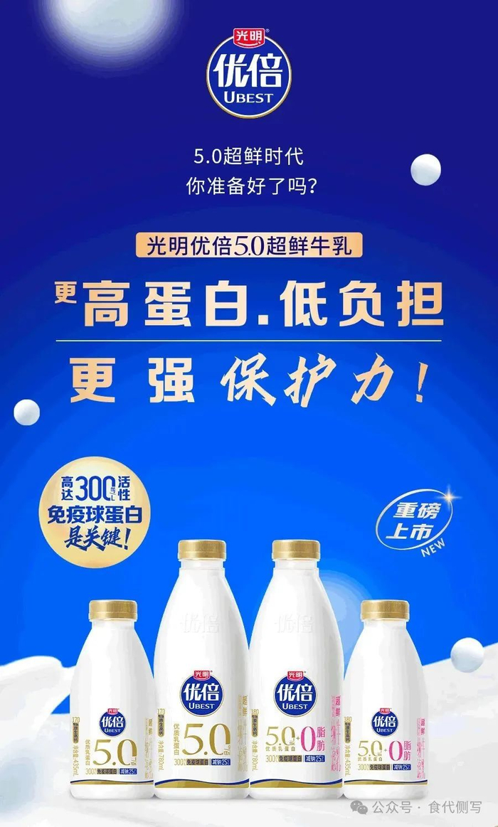 面对困境,光明乳业试图通过产品创新与品牌升级打开新局面。2024年,公司推出超过40款新品,包括优倍5.0超鲜牛乳、莫斯利安轻酸奶系列等,技术层面采用NF膜+MF膜新工艺提升产品竞争力。