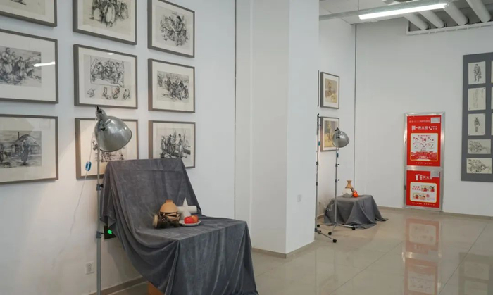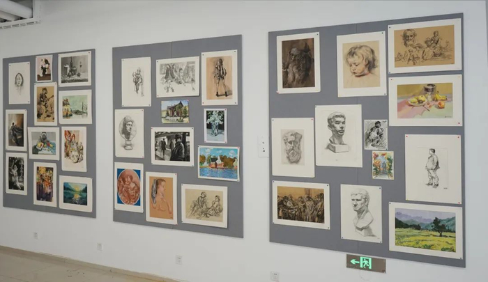 创艺中心东侧为艺术空间展厅,展厅视野宽阔,配有专用展板、展桌、展台,日常用于展览陈列学生优秀作品,是同学们探讨艺术、畅游艺术世界的重要场所,也是学校推动和践行美育教育的重要平台。在艺术空间,已为美术生举办多场高质量的专业画展,并受到了家长、师生的认可,得到了专业领域众多大咖的肯定。
