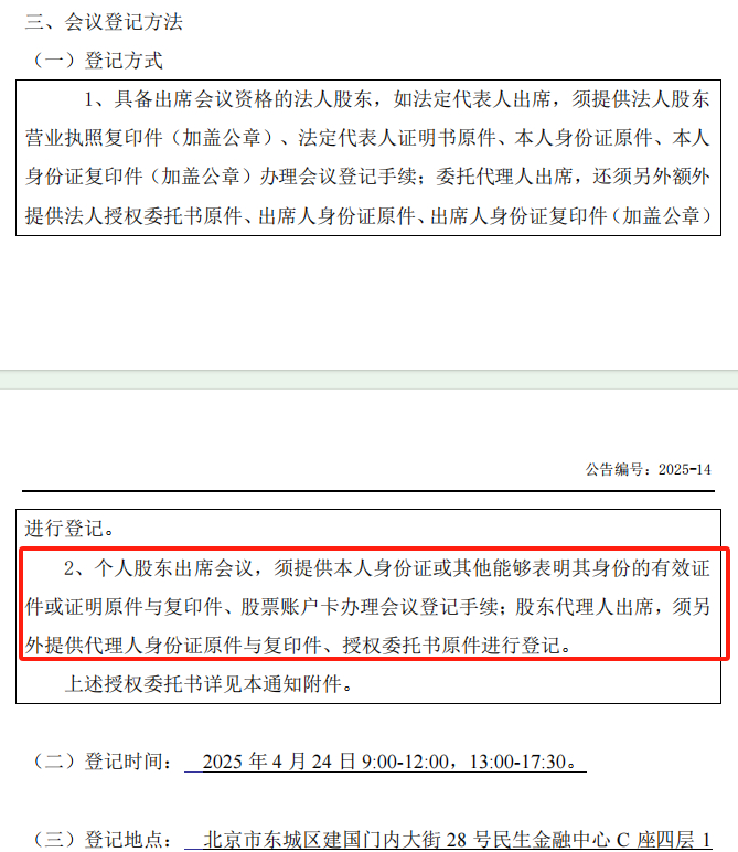 4月19日,民生5发布增加临时提案后的临时股东会通知公告,将议案统一,并增加议案四(补选石宇为董事)。若议案二获得通过,则议案四无需表决。在这份公告中,还加入了会议登记方法这一条目,要求出席股东于4月24日在民生5指定地点进行材料报备和现场登记。