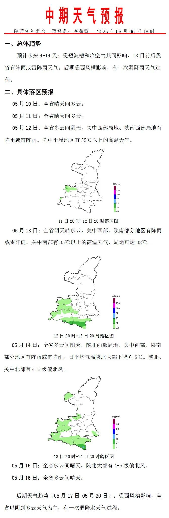 西安市气象台2025年05月06日16时发布天气预报: