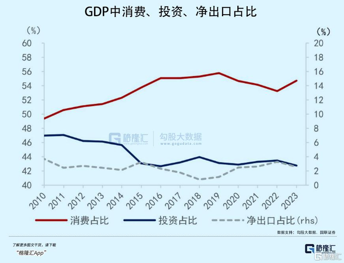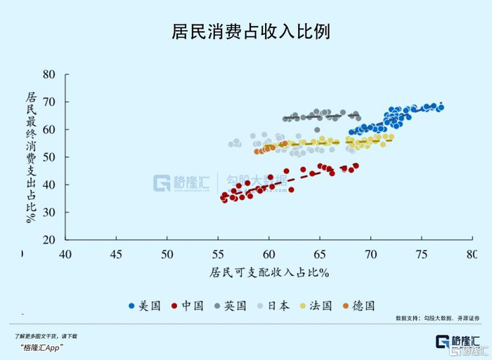 但GDP中消费的占比,总体却是在走高的。