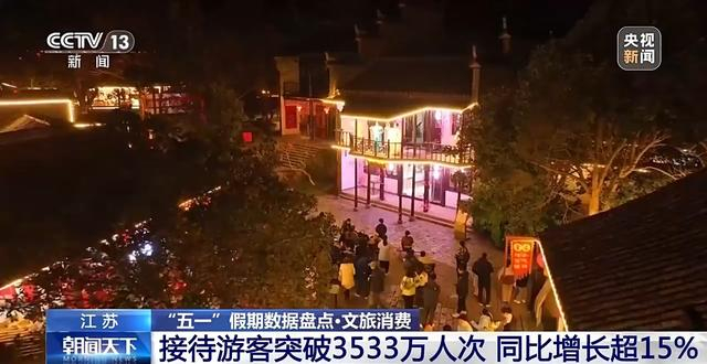 截至昨天16时,据江苏智慧文旅平台监测,“五一”假期,全省纳入监测的644家A级旅游景区、195个省级以上乡村旅游重点村、75家夜间文旅消费集聚区(含建设单位)和84家博物馆去重后,共接待游客3533.02万人次,游客消费总额达162.72亿元,比2024年同期分别增长15.62%和14.79%。