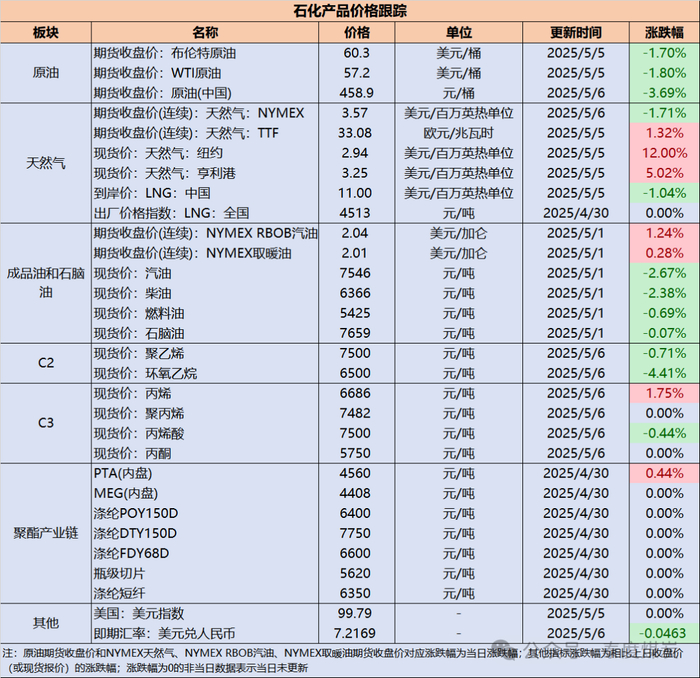 石化产品价格跟踪