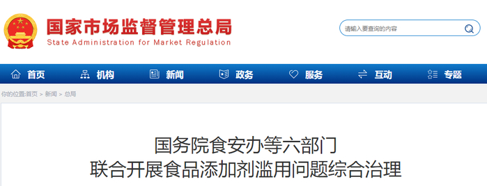 近日,国务院食安办联合工业和信息化部、农业农村部、国家卫生健康委、海关总署、市场监管总局印发《食品添加剂滥用问题综合治理方案》(以下简称《方案》),在全国范围内部署开展食品添加剂滥用问题综合治理行动。