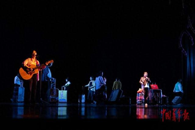 5月5日,北京市昌平区晓剧场,在京务工的女性劳动者和青年志愿者一起表演原创纪实话剧《从清晨到夜晚》,通过母女对话表现进城务工者的下一代就业焦虑、女性代际之间的相互托举。中青报·中青网记者 李峥苨/摄