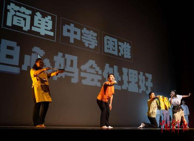 5月5日,北京市昌平区晓剧场,在京务工的女性劳动者和志愿者一起表演原创纪实话剧《从清晨到夜晚》,表现女性在家庭生活中的价值和付出,演出吸引了不同年龄层的观众。中青报·中青网记者 李峥苨/摄