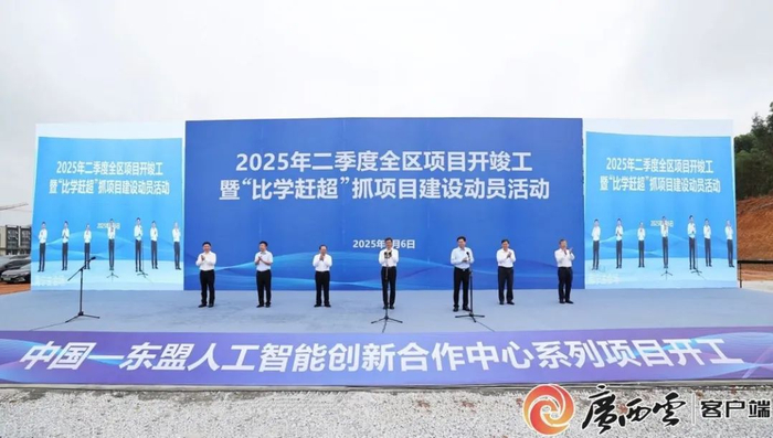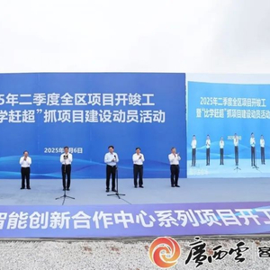 据了解,主会场开工项目为中国—东盟人工智能创新合作中心(南A中心)系列项目,包括中国—东盟人工智能可信数据专区、中国—东盟人工智能创新合作中心(孵化区)、广西人工智能学院等。二季度在全区开展“比学赶超”抓项目活动,着力推动二季度开竣工项目980多个、总投资超4200亿元,投资十亿元以上制造业项目开竣工35个、总投资1046亿元,其中五象云谷AI集群、集成电路晶圆级封测与集成创新型产业基地二期、云端智造机器人区域总部与研发生产基地、崇左大新华清同创智能计算机设备制造等一批新兴产业项目落地开工,为全区经济稳增长、调结构、强动能提供有力支撑。