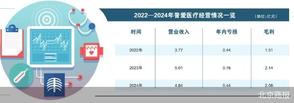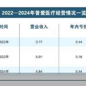 财务数据显示,2022—2024年,普爱医疗的收入分别为3.77亿元、5.01亿元及4.84亿元;分别录得毛利1.51亿元、2.14亿元及2.06亿元,并于同年分别录得年内亏损4370.4万元、1596.8万元、4422.6万元。