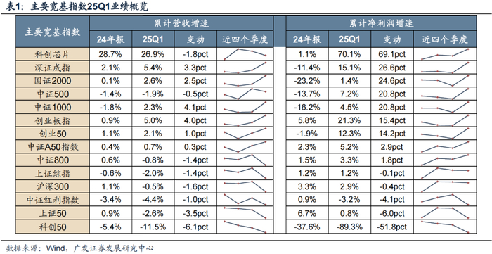 小盘、成长类宽基指数收入及利润增速多有改善。科创芯片、深证成指、国证2000盈利环比改善幅度居前,沪深300、红利、上证50等大盘价值类指数盈利环比改善幅度落后或是仍在下行。