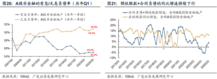 负债结构上,A股企业【有息负债率】和【无息负债率】均已稳定,且【预收账款+合同负债】的订单数据已显著回升。