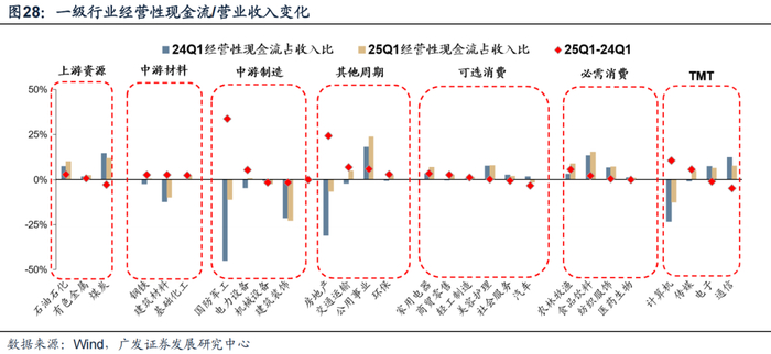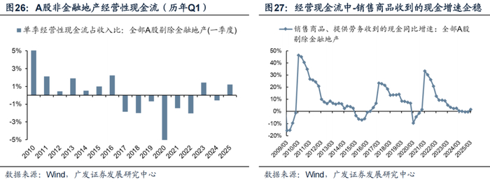 不过, 25年一季度企业净现金流情况有所改善,暂不考虑23年Q1的疫后异常值,处在18年以来较好水平。
