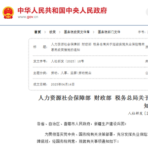 4月14日,人力资源社会保障部 财政部 国家税务总局三部门发布《关于延续实施失业保险稳岗惠民政策措施的通知》。