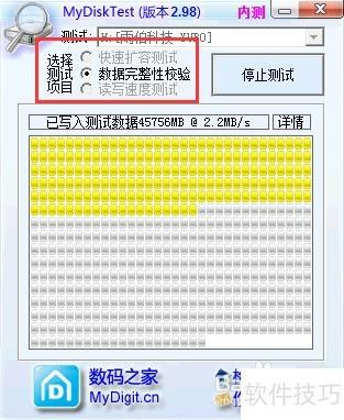 6、 上图是数据完整性校验,测试时长取决于U盘容量。
