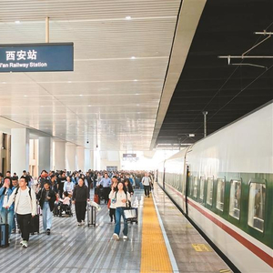 5月1日,旅客行走在西安站站台。 新华社记者 邢广利 摄