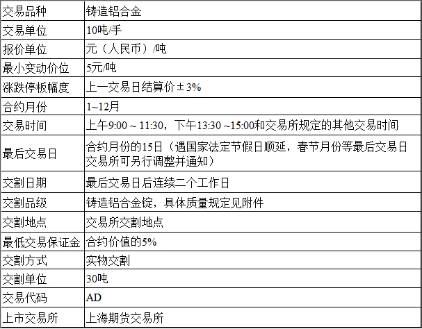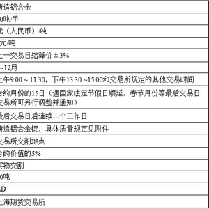 上海期货交易所铸造铝合金期货合约(征求意见稿)