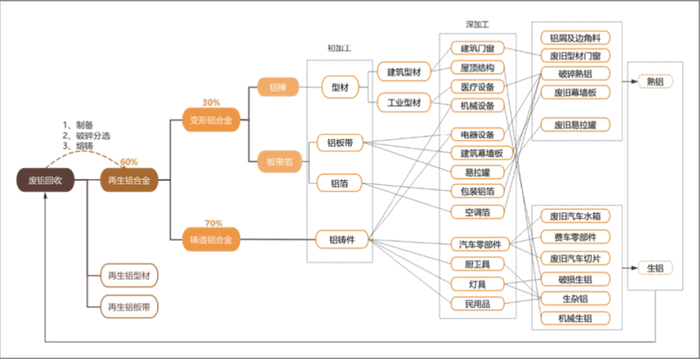 铸造铝合金产业链覆盖从废料回收到终端应用的完整链条,核心环节可分为原料供应、中游制造、下游应用三部分: