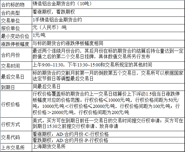 上海期货交易所铸造铝合金期货期权合约(征求意见稿)