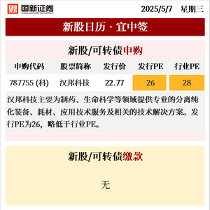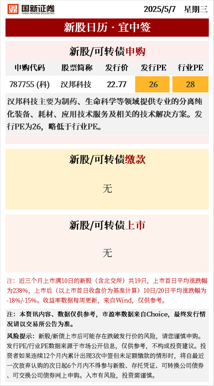 新股日历 | 今日一只新股申购 · 20250507