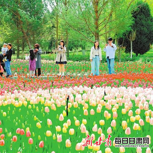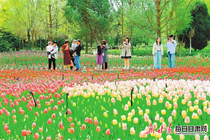 5月5日,嘉峪关市东湖生态旅游景区郁金香迎来盛花期,吸引众多市民游客游玩、拍照。新甘肃·甘肃日报通讯员 马玉福
