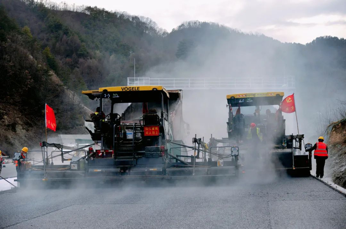 5月4日,康略(康县至略阳)高速路面项目(一期通车段)施工现场机械轰鸣,热浪滚滚。随着最后一车沥青混合料摊铺碾压成型,康略路面项目顺利完成上面层沥青摊铺施工任务,标志着该项目正式进入阶段性通车倒计时。