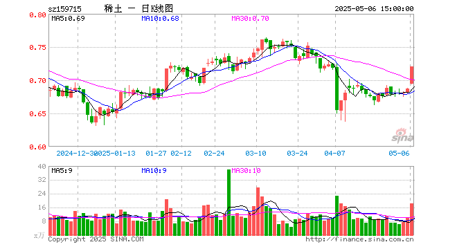 5月6日稀土ETF易方达(159715)份额减少300.00万份,最新份额2.77亿份,最新规模1.98亿元