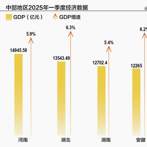 2025年一季度,中部六省合计实现地区生产总值6.70万亿元,占全国GDP的比重约为21%。分省份来看,河南、湖北、湖南、安徽4个省份GDP已过万亿元,分别为14945.58亿元、13543.49亿元、12702.4亿元、12265亿元,江西、山西GDP分别为7927.1亿元、5611.28亿元。
