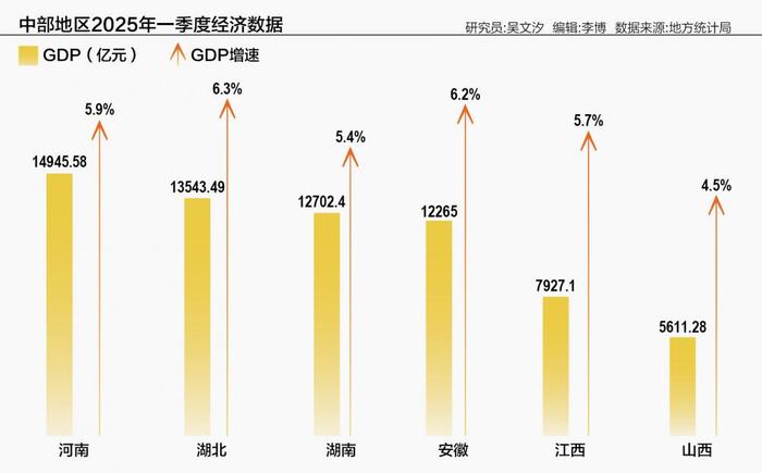 中部地区河南、湖北、湖南、安徽、江西、山西六省经济“一季报”已全部出炉。