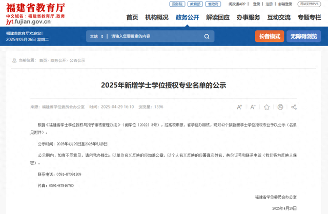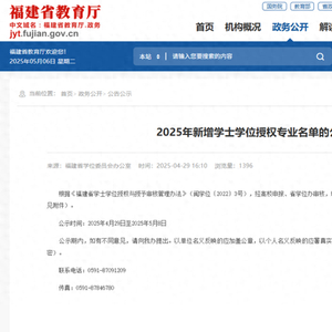 近日,福建省教育厅官网发布《2025年新增学士学位授权专业名单的公示》,根据《福建省学士学位授权与授予审核管理办法》(闽学位〔2022〕3号),经高校申报、省学位办审核,对42个拟新增学士学位授权专业予以公示。