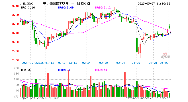 中证500ETF华夏(512500)涨0.13%,半日成交额7911.30万元