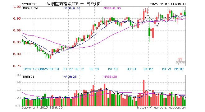 科创医药指数ETF(588700)跌1.13%,半日成交额1495.96万元