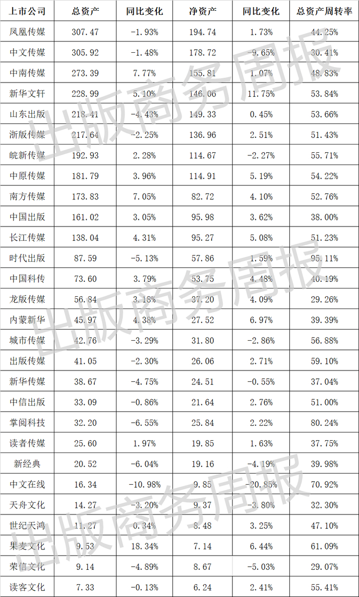 2024年出版业上市公司总资产、净资产情况