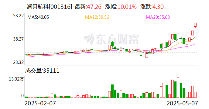 人民财讯5月7日电,商业航天概念走强,润贝航科连续第三个交易日涨停,金明精机20%涨停,晨曦航空涨逾15%,航天长峰、宗申动力、龙溪股份等多只个股涨停。